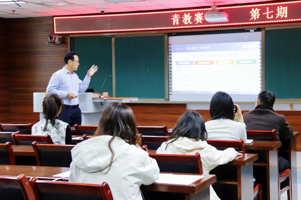 第六期培训会上,宣湟老师以“教学竞赛——青年教师成长的加速器”为题,先是介绍了自己的参赛历程,从参赛课程的选定、课程目标、课程建设成果,到参加学院竞赛、校赛培训、参加校赛(复赛 决赛 选拔)、学习培训、参加省赛(预赛+决赛)、参加国赛获奖,并结合参赛案例深入细致地给老师们讲解了如何做好教学设计,最后通过自己的教学成长经历以及教学比赛的参赛经历和经验为青年教师们上了一堂精彩的课。