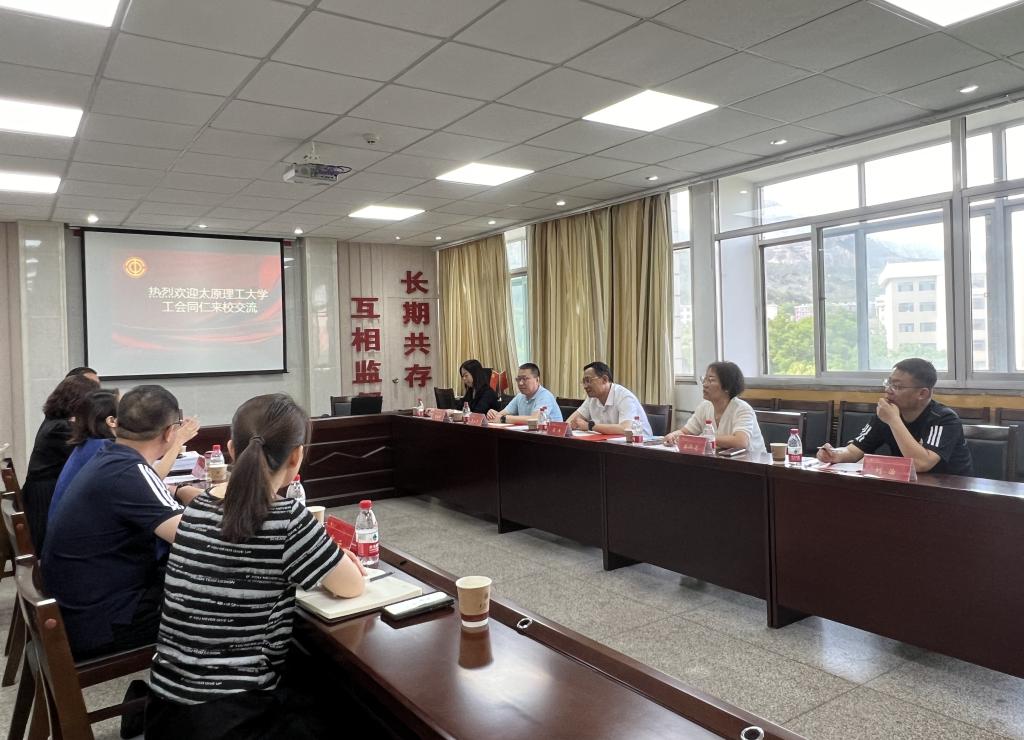 2024年5月23日,太原理工大学工会主席周伟、副主席梁泽莹、李永彦等一行5人来访我校,就高校工会工作的开展进行了深入调研与交流。我校工会主席张清同志主持调研交流会,校工会全体成员参加了会议。
